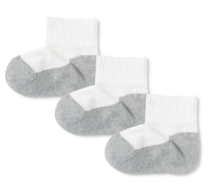 無印良品では、2025年12月現在、白の靴下(底はグレー)が3足セットで販売されています。